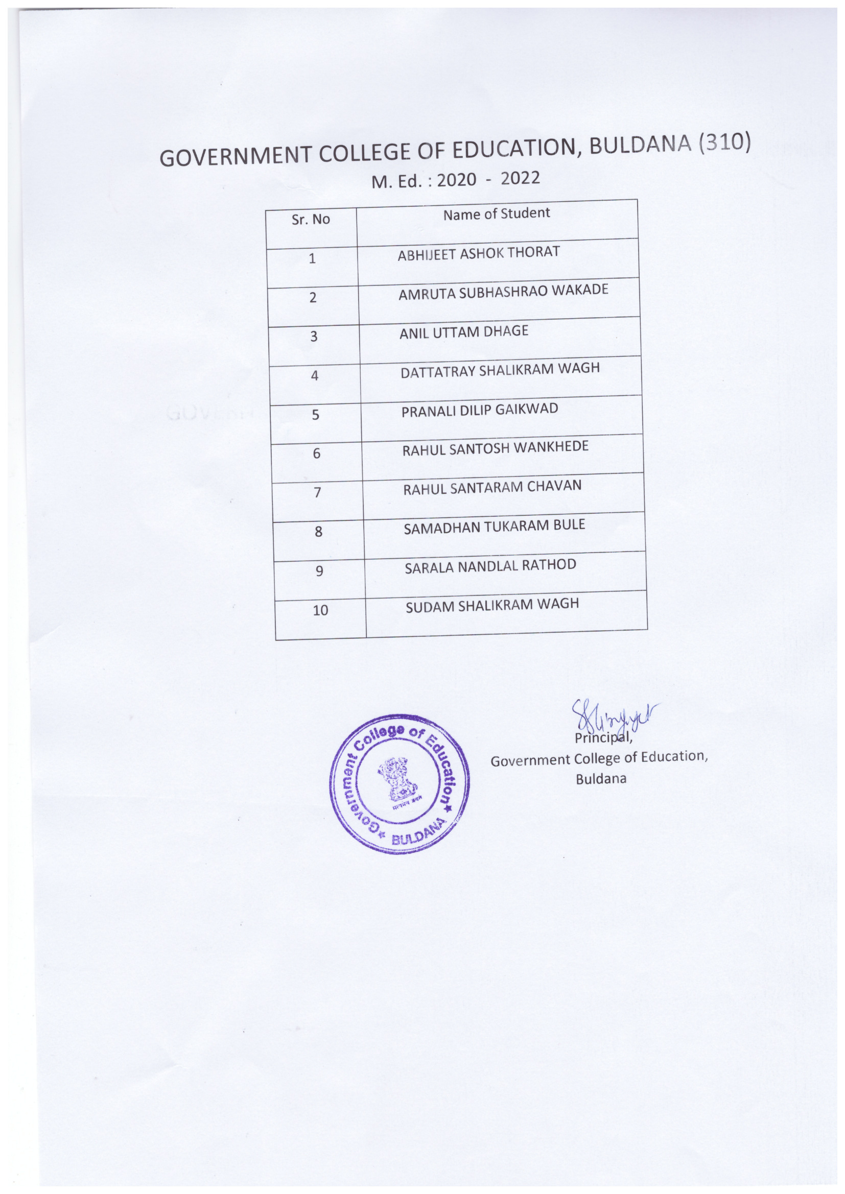 M.Ed 2020-2022 Student List