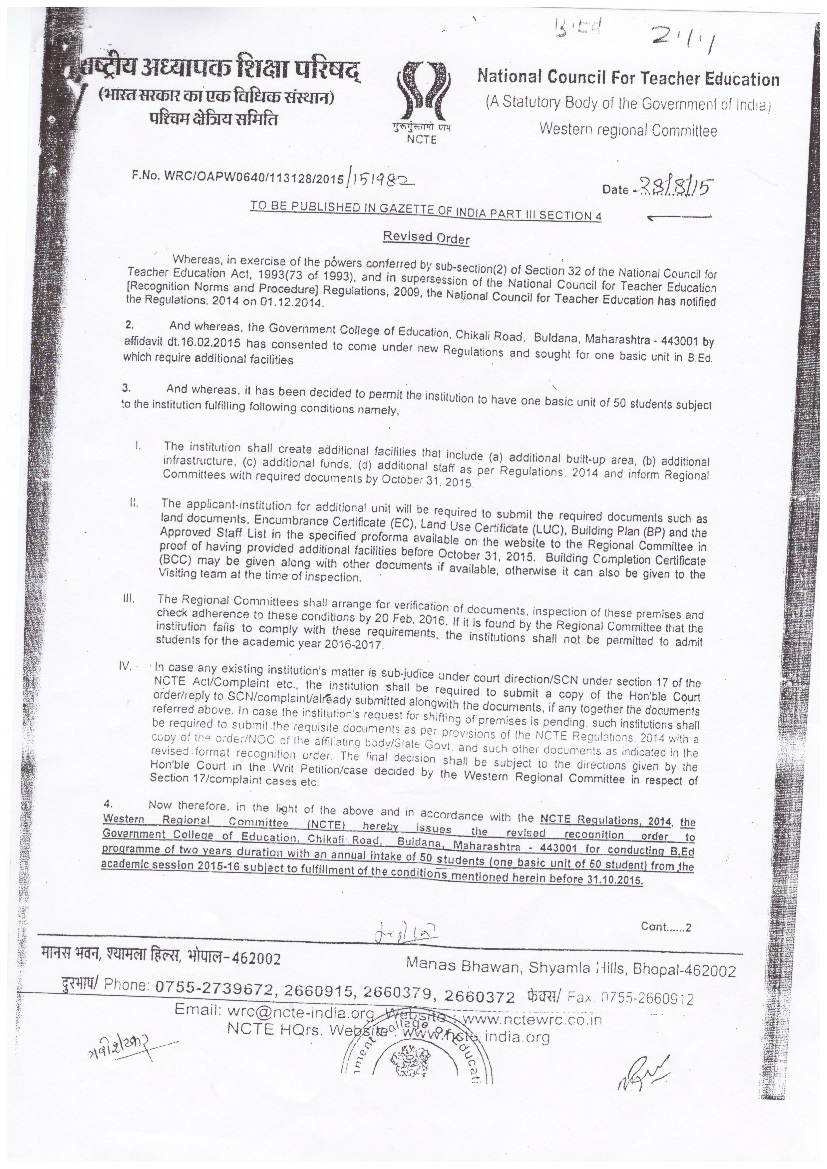 NCTE, Bhopal no. :-WRC/2.30/113128/2004/3090