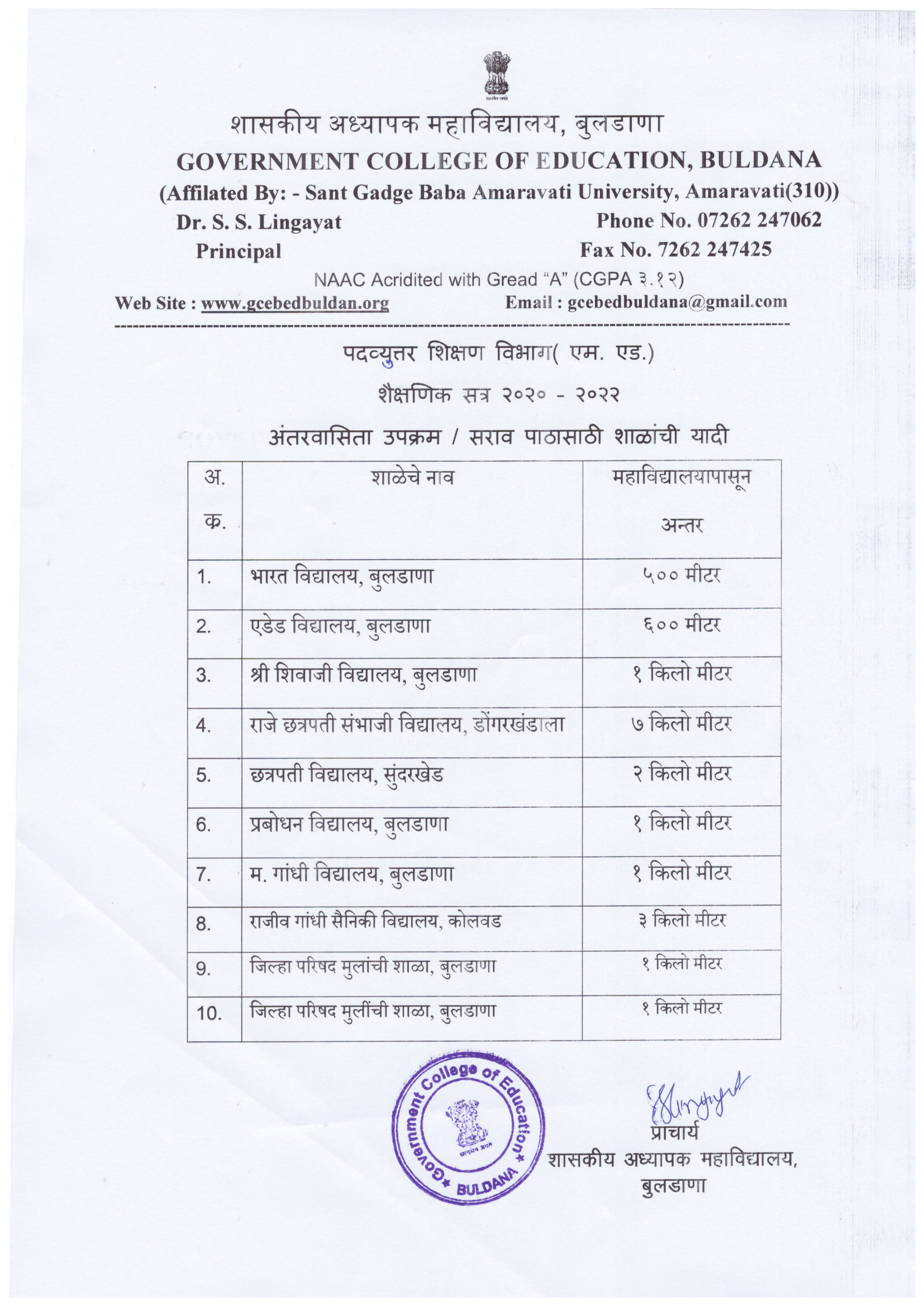 Affiliated to Sant Gadge Baba Amravati University, Amravati.